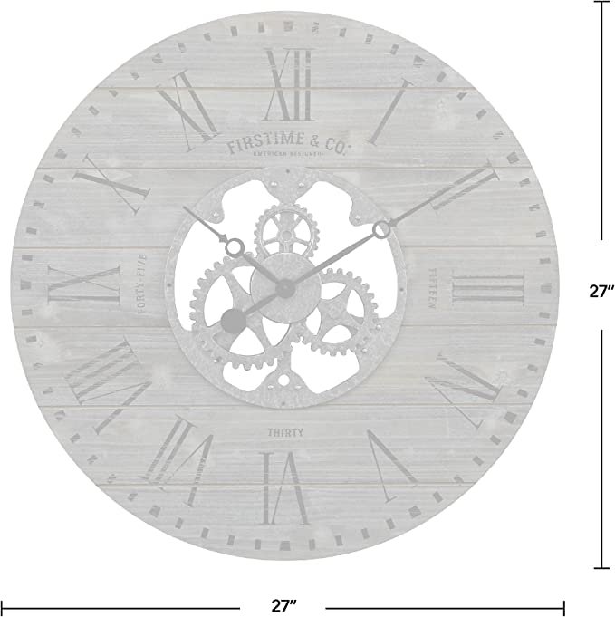 This Industrial FarmHome Round Oversized Wall Clock in Rustic Grey features a 27 inch diameter and 2 inch depth, which makes it a great size for any space. Nothing ties a room together better than a great rustic clock. Easy to please, the easy-to-read numbers and eye-catching timepiece is the perfect addition to your living space. Finding the right clock to suit your style has never been easier thanks to our wide range of timekeeping solutions.